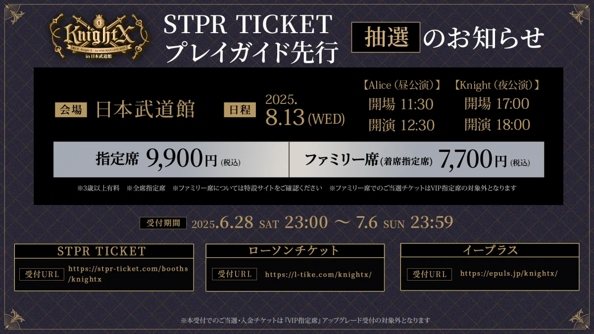 騎士X - Knight X - 1st ONE MAN LIVE 2025 in 日本武道館 STPR TICKET(VIP)・プレイガイド先行受付開始!